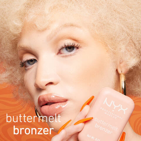 Blend and buff Buttermelt Bronzer onto high points of the face such as temples, cheekbones, forehead and the bridge of nose! Use sweeping motions to blend and evenly disperse product across the skin for a buttered up bronzed look!